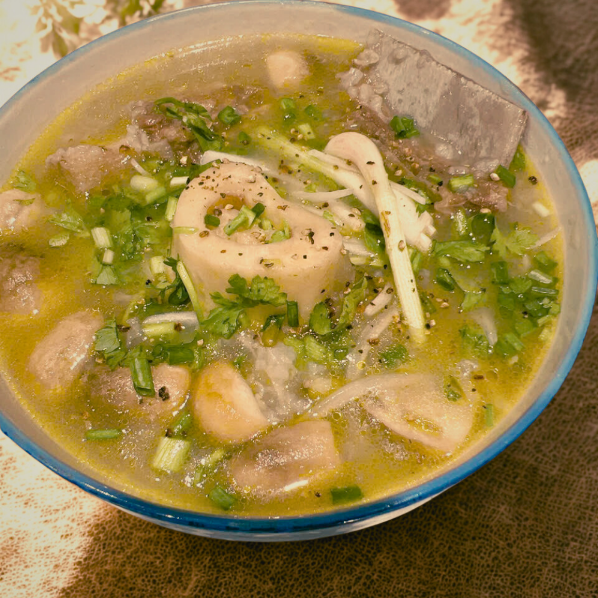 Cháo sườn bò là món ăn bổ dưỡng, thơm ngon với phần cháo ninh nhừ mịn màng, kết hợp cùng sườn bò hầm mềm, béo nhẹ và ngọt tự nhiên. Mỗi muỗng cháo nóng hổi thấm đẫm hương vị từ xương bò hầm kỹ, thêm chút hành lá, tiêu xay, và gừng thơm nồng – ấm bụng, đậm đà và đầy dưỡng chất.