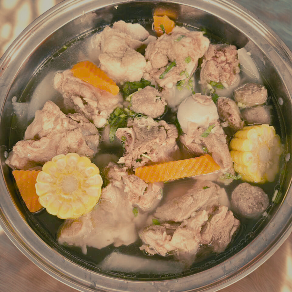Nồi lẩu nóng hổi với nước dùng hầm từ xương heo, ngọt thanh và dậy vị tự nhiên. Những miếng xí quách mềm rục, thịt xen gân chắc ngọt, vừa hầm vừa nhâm nhi thì “đã” vô cùng. Kết hợp cùng rau xanh tươi mát, mì hoặc bún ăn kèm, tạo nên một bữa tiệc trọn vị cho cả gia đình.